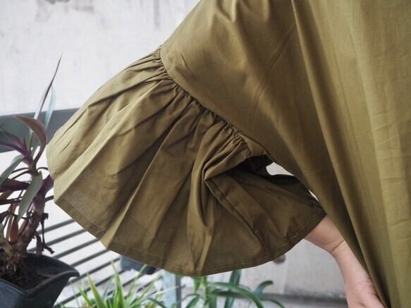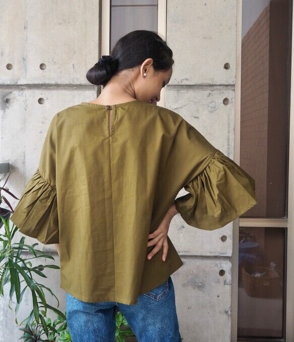 ハンドメイド/ギャザースリーブトップス(ファインコットン)