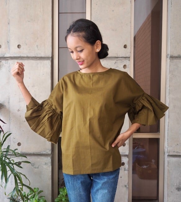 ギャザースリーブが印象的なトップスです。