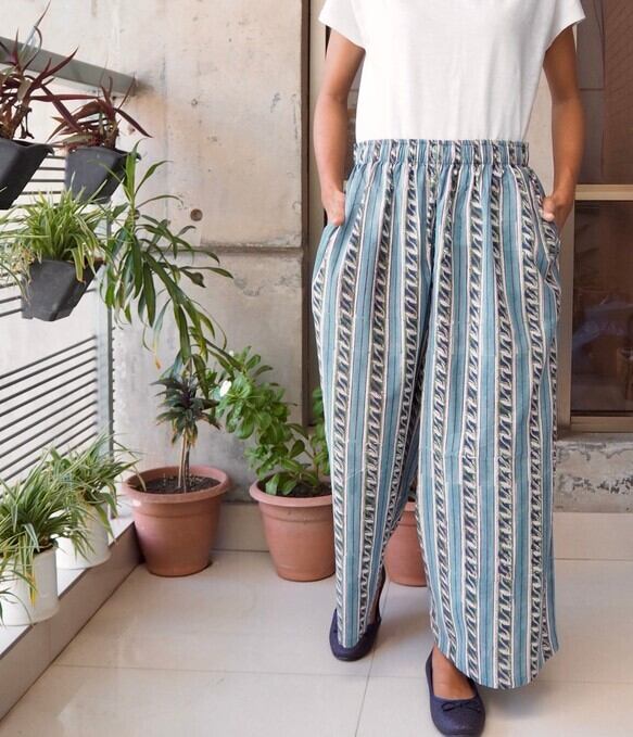 北インドのジョイプールコットン(インド綿)生地で楽チンに履いていただけるけどキレイに見えるワイドパンツを作りました!