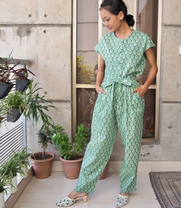 上下組み合わせてサロペットとしても、それぞれキャミソールとして、パンツとして別々にもお楽しみいただけます。