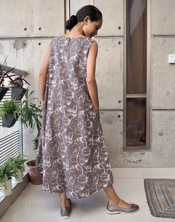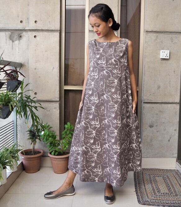 インド綿(ハンドブロックプリント)/Aラインワンピース/マキシ丈