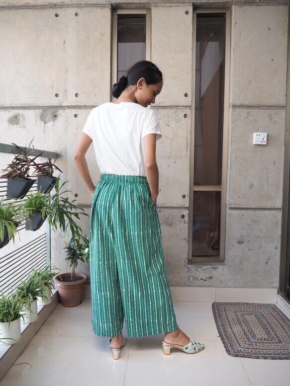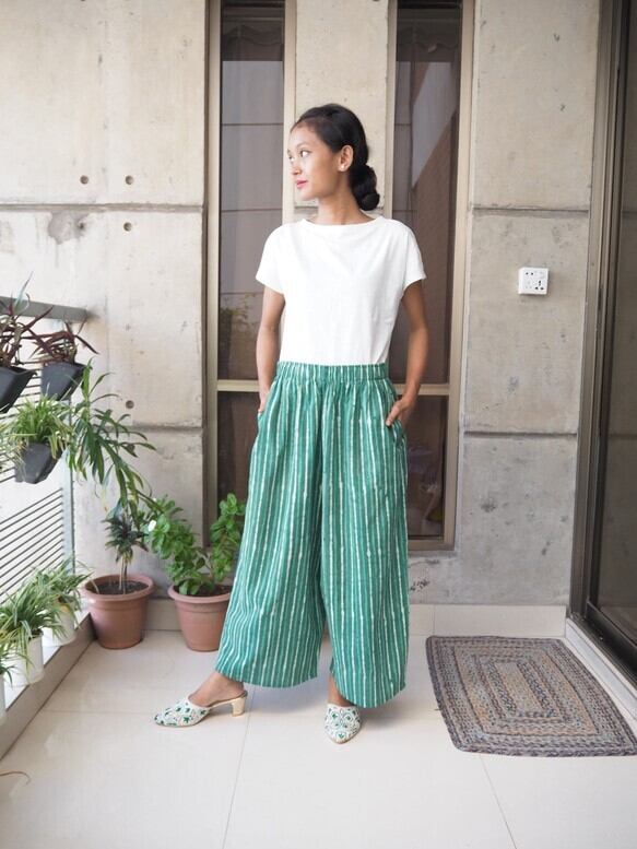 北インドのジョイプールコットン(インド綿)生地で楽チンに履いていただけるけどキレイに見えるワイドパンツを作りました!