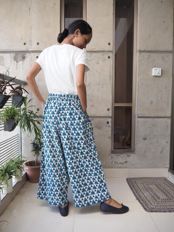 北インドのジョイプールコットン(インド綿)生地で楽チンに履いていただけるけどキレイに見えるワイドパンツを作りました!