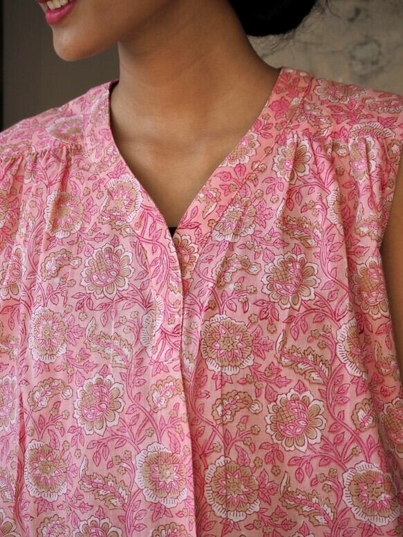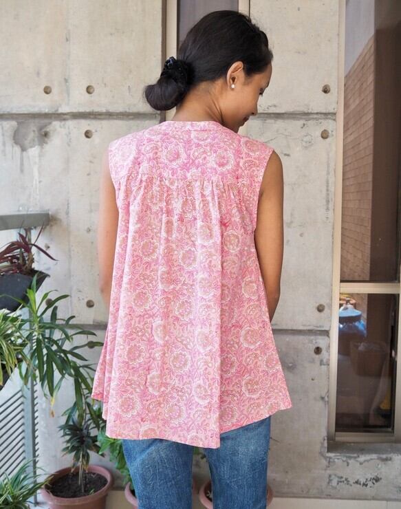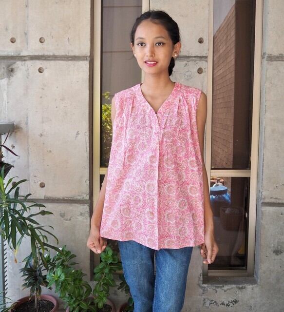 ハンドメイド/ノースリーブトップス(ハンドブロックプリント)