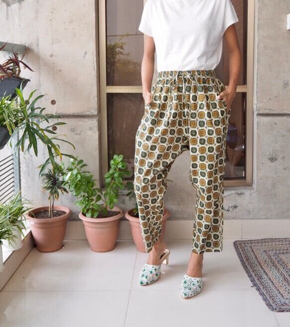 秋色インド綿サルエルパンツ
