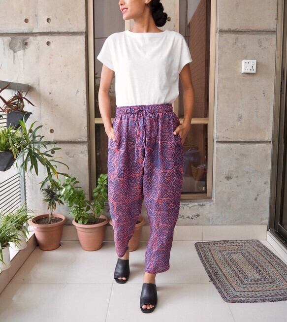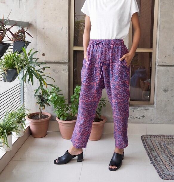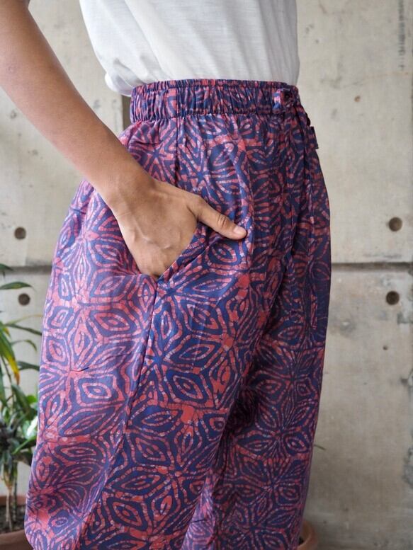 バングラデシュ の手作業草木染めコットンシルクでお作りしましたリラックスパンツです。