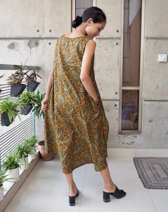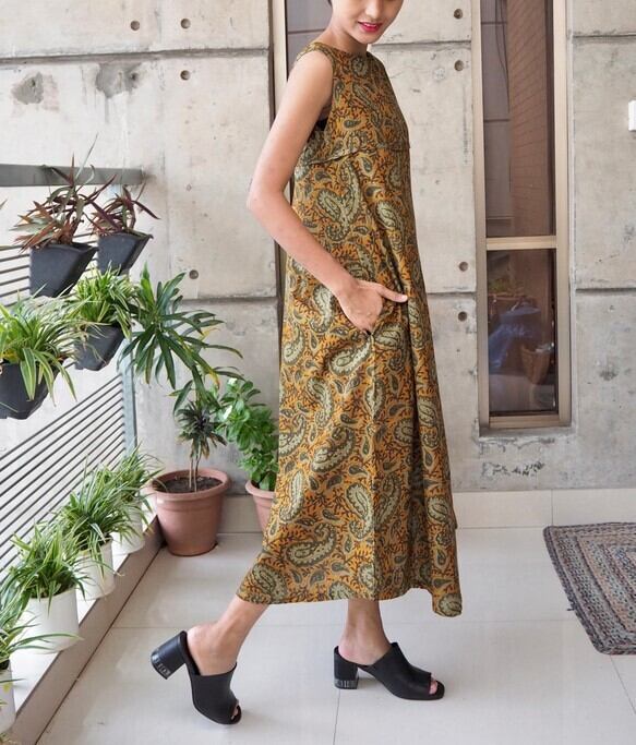 インド綿/Aラインワンピース/マキシ丈