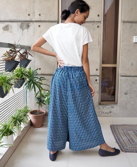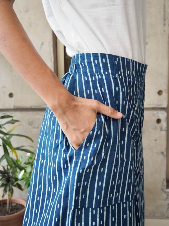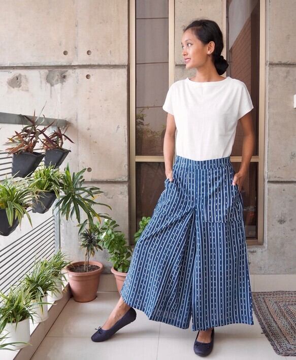 インドの手仕事ハンドブロックプリントコットンでおつくりしました袴パンツです。