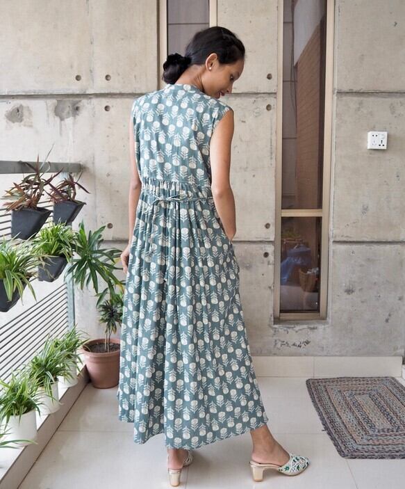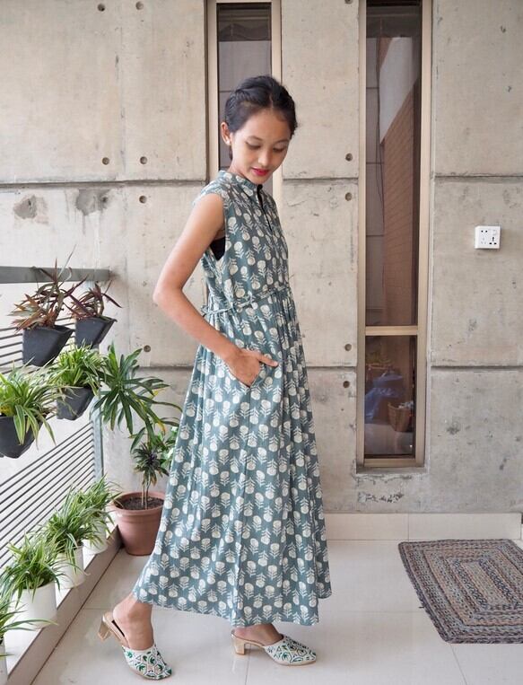インド綿(スクリーンプリント)を使ったワンピースです。