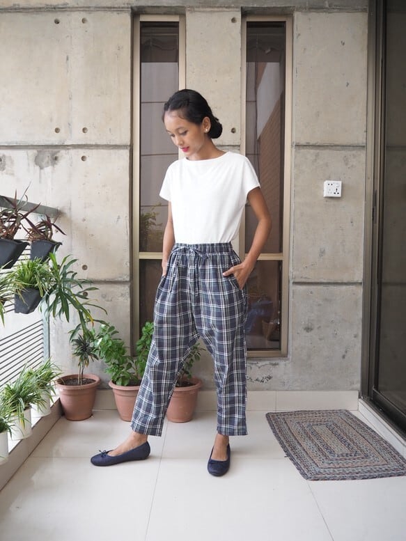 コットンでお作りしましたリラックスパンツです。