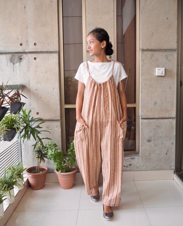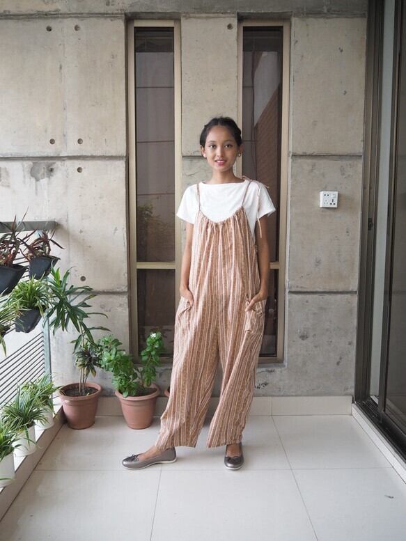 インド綿 紐サロペット