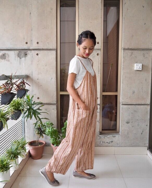 軽くて涼しいインド綿生地で楽チンに穿いていただけるサロペットをつくりました!