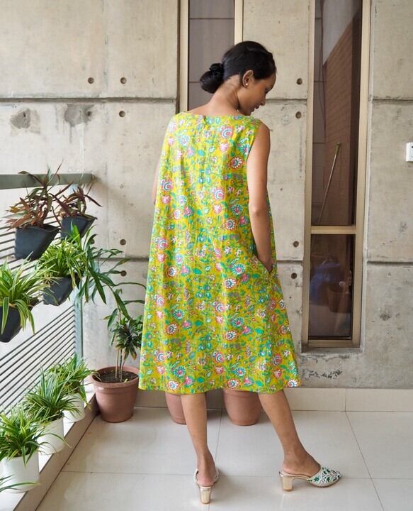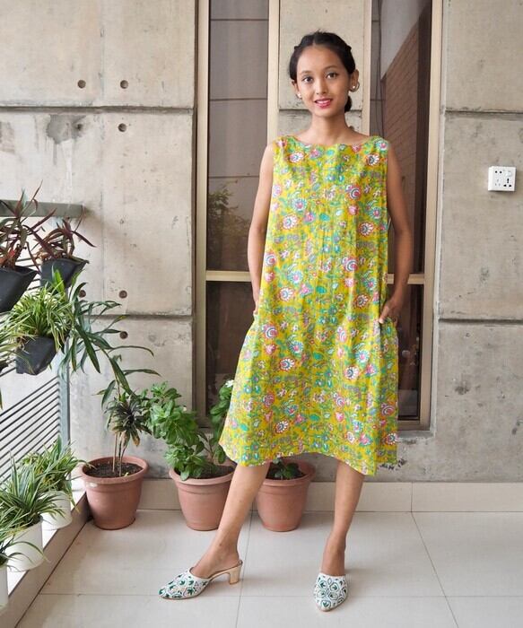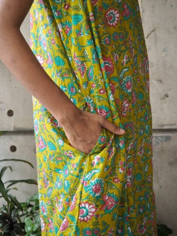 インド綿Aラインワンピース