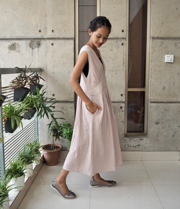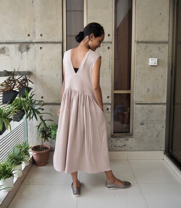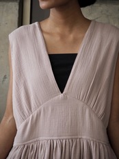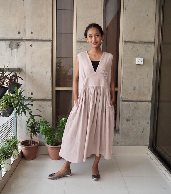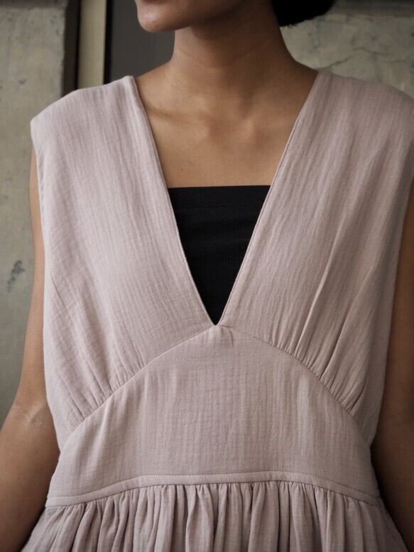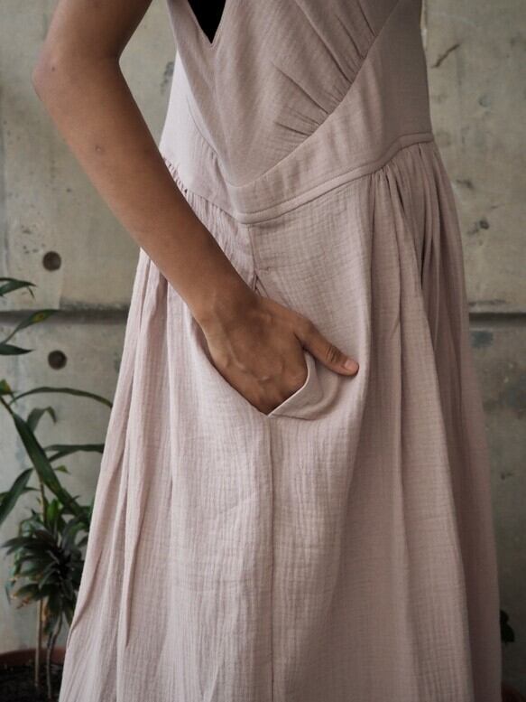 コットン細見えVネックワンピース(ダブルガーゼ)