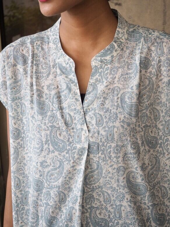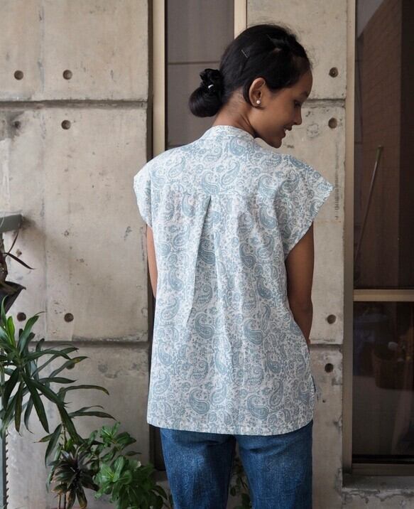 フレンチスリーブトップス(インド綿スクリーンプリント)