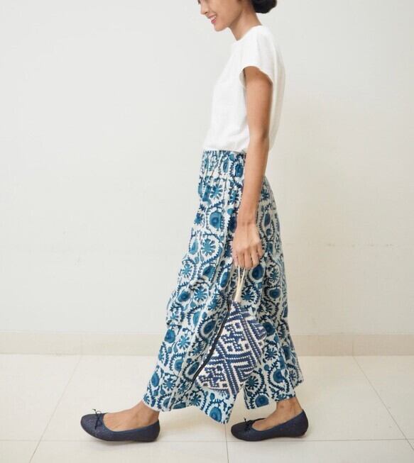 テイラーメイド/ハンドブロックプリント/ギャザー入りワイドパンツ