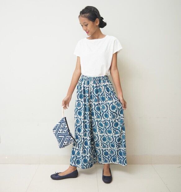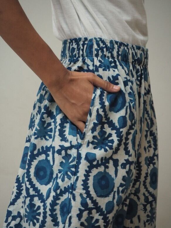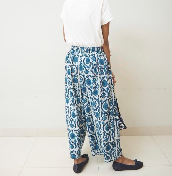 インドの手仕事ハンドブロックプリントコットン生地で楽チンに履いていただけるけどキレイに見えるワイドパンツを作りました!