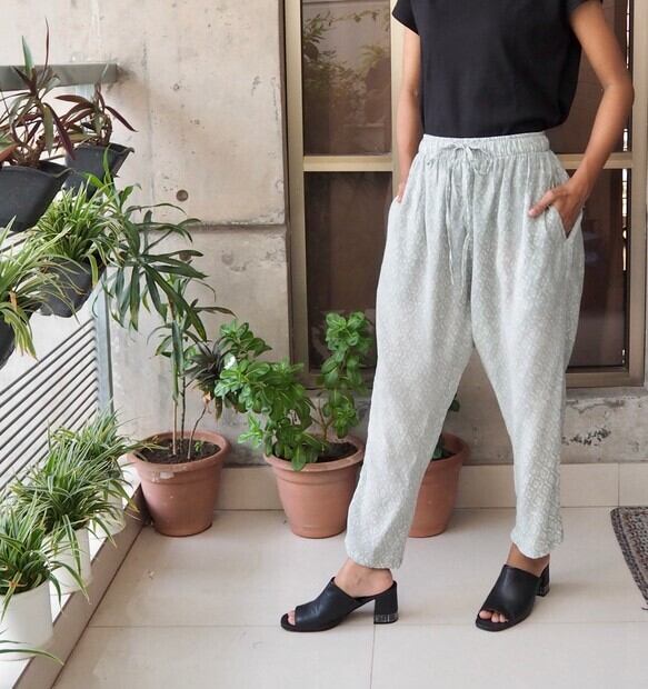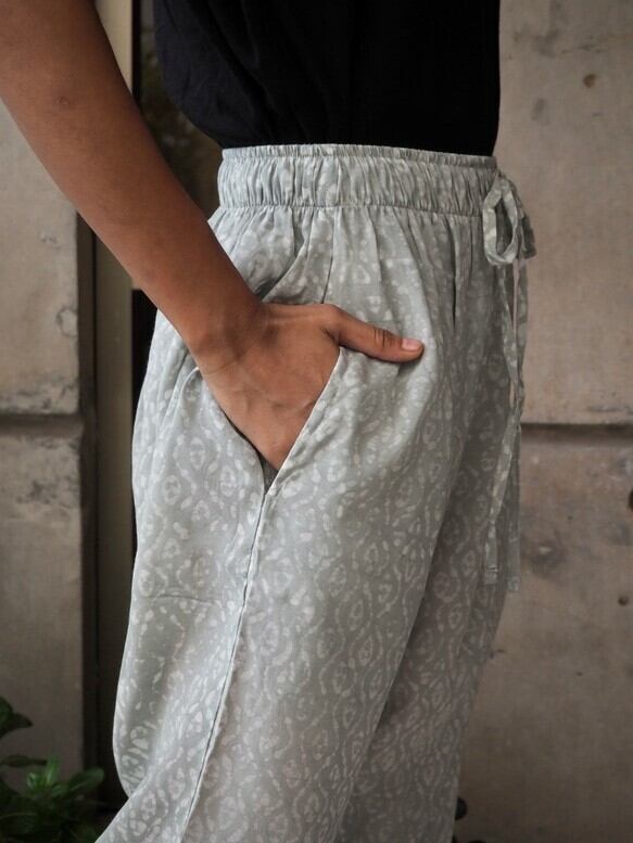 バングラデシュ の手作業草木染めコットンシルクでお作りしましたリラックスパンツです。