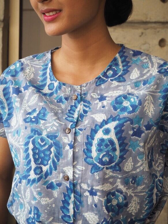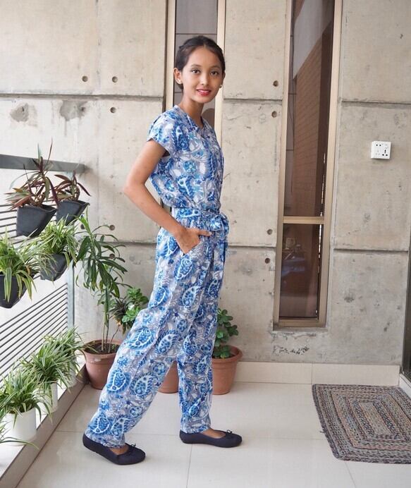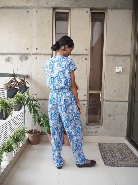 サロペット風セットアップ(ハンドブロックプリントコットン)