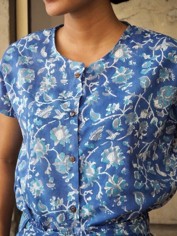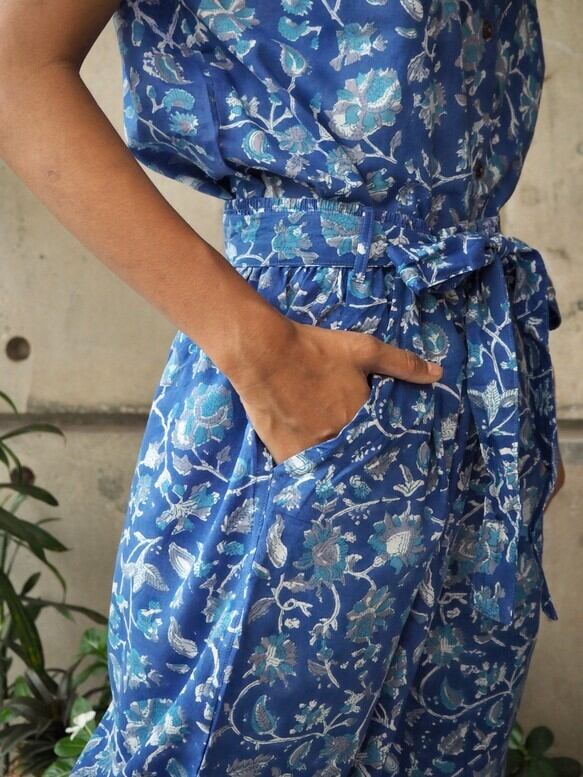 サロペット風セットアップ(ハンドブロックプリントコットン)