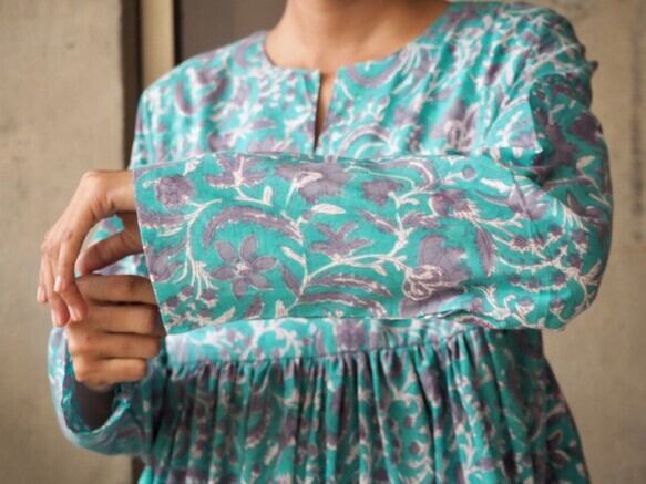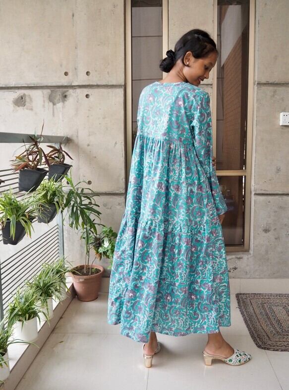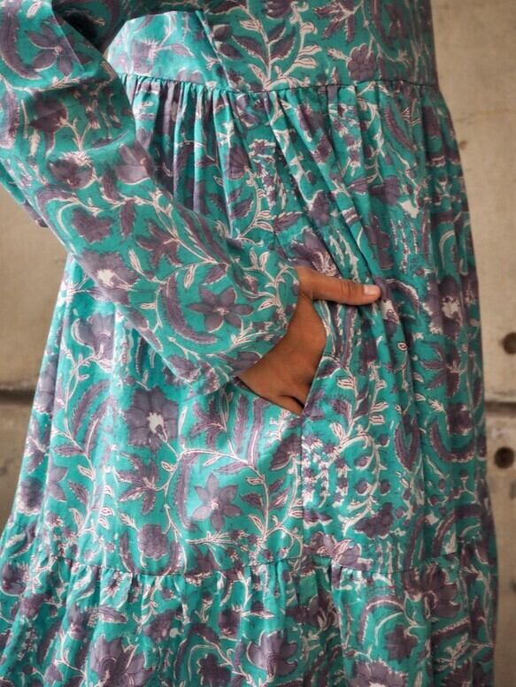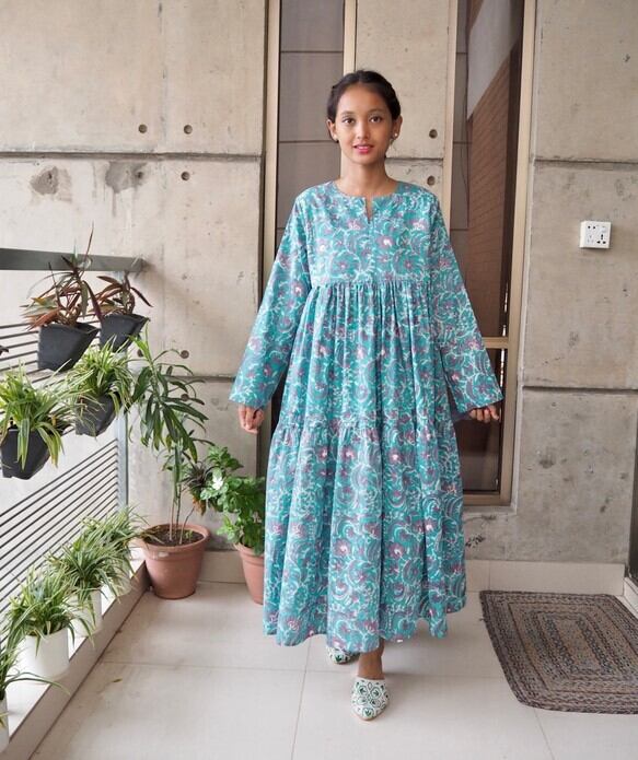 インド綿ティアードワンピース(ハンドブロックプリント)