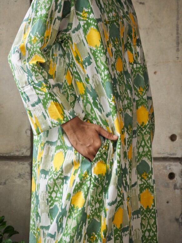 *弊社の取り扱っているインド綿は基本1ロール20M程度となっており、また多くの洋服が4-5M必要とするようなギャザーやタックが入っているもののため1つの柄布から4-5着しかお作りする事ができません。商品の販売を複数サイトで行っており、在庫の更新が間に合わなく同じタイミングで布の在庫以上の商品の購入を受けてしまう事があったり、布に落ちないシミが見つかったりして商品の縫製が出来ない事がございます。