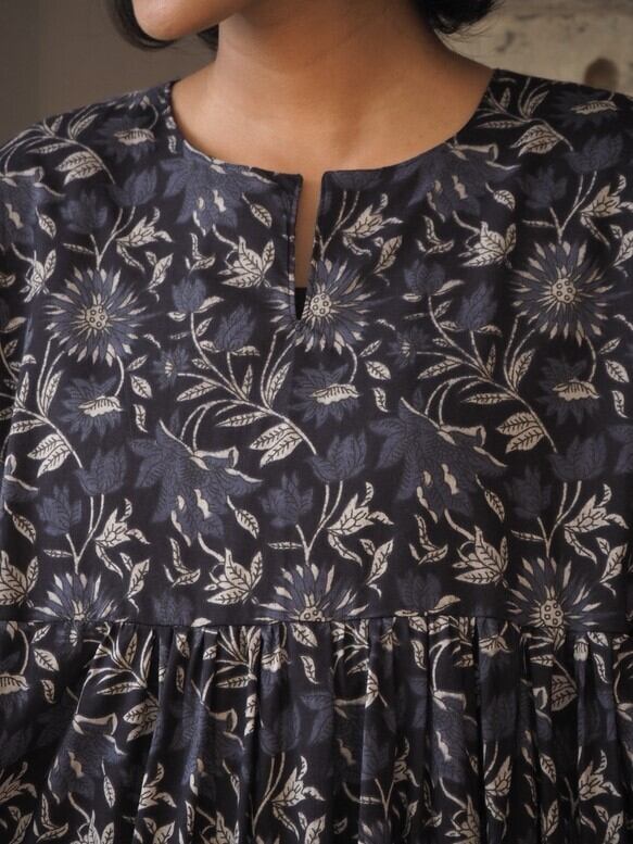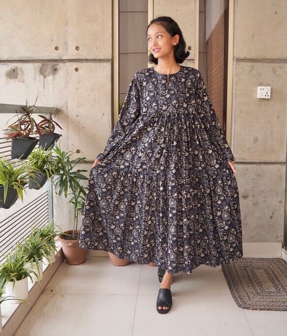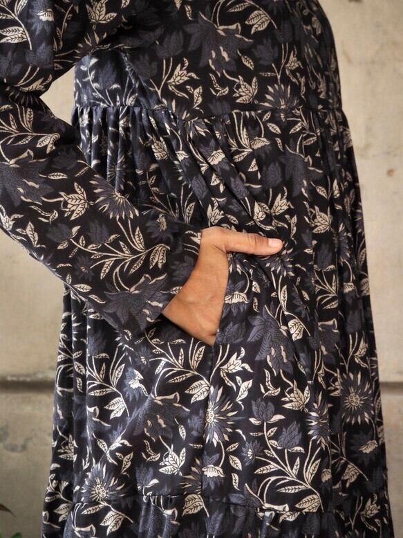 インド綿ティアードワンピース(スクリーンプリント)