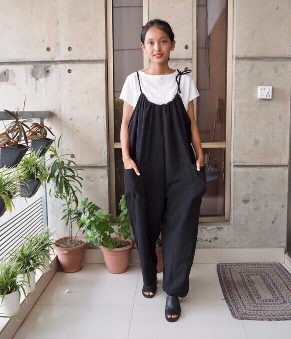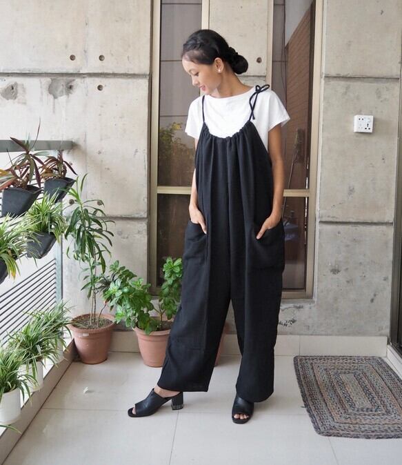 ダブルガーゼ布で楽チンに穿いていただけるサロペットをつくりました!