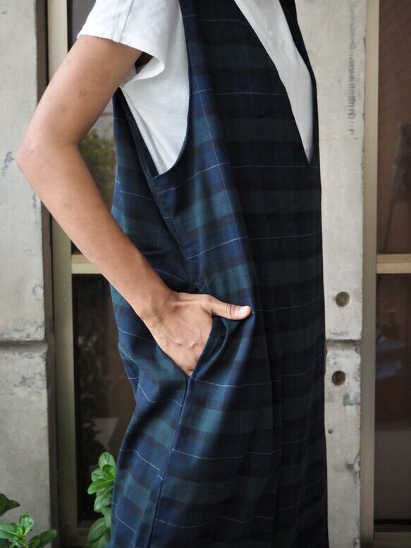 ゆとりのある、でもきれいに見えるジャンパースカートをつくりました。冬はタートルネックと下にはタイツ、秋口にはロングTシャツで1年中活用いただけます!