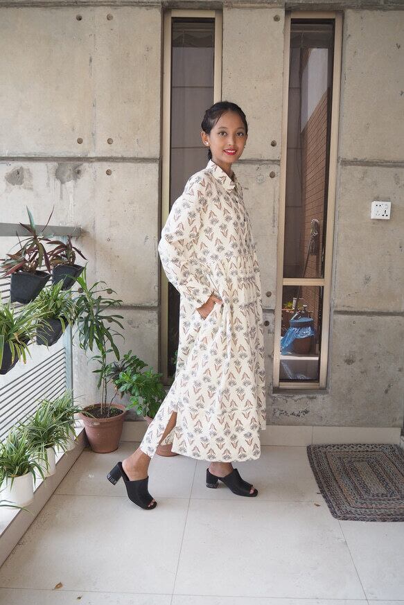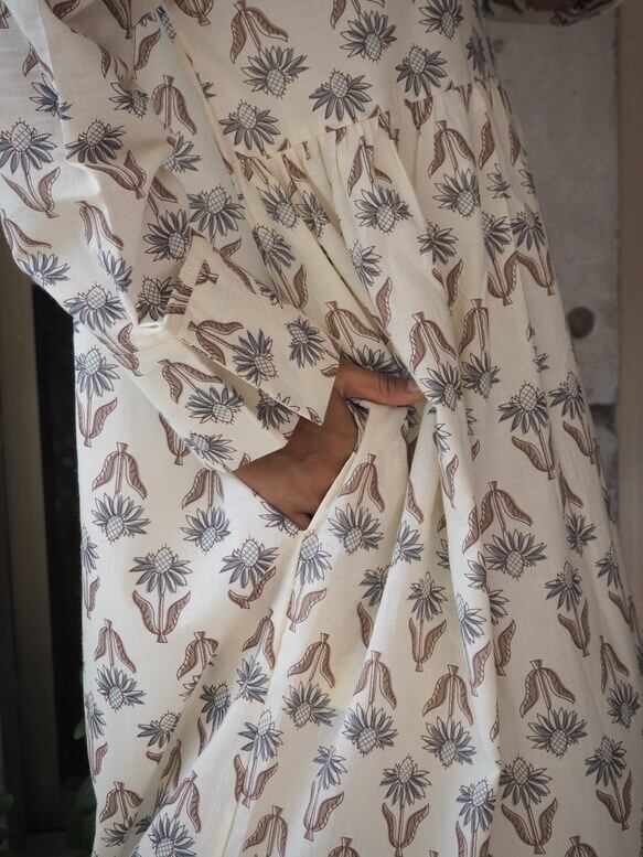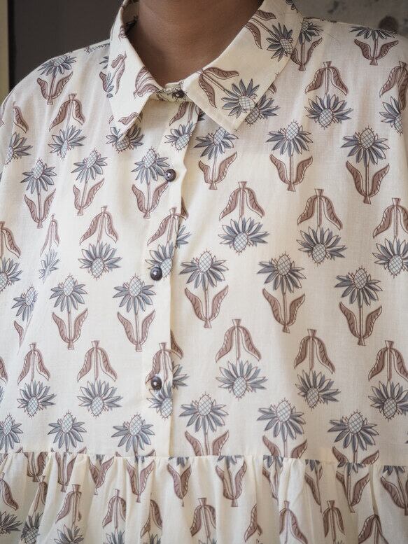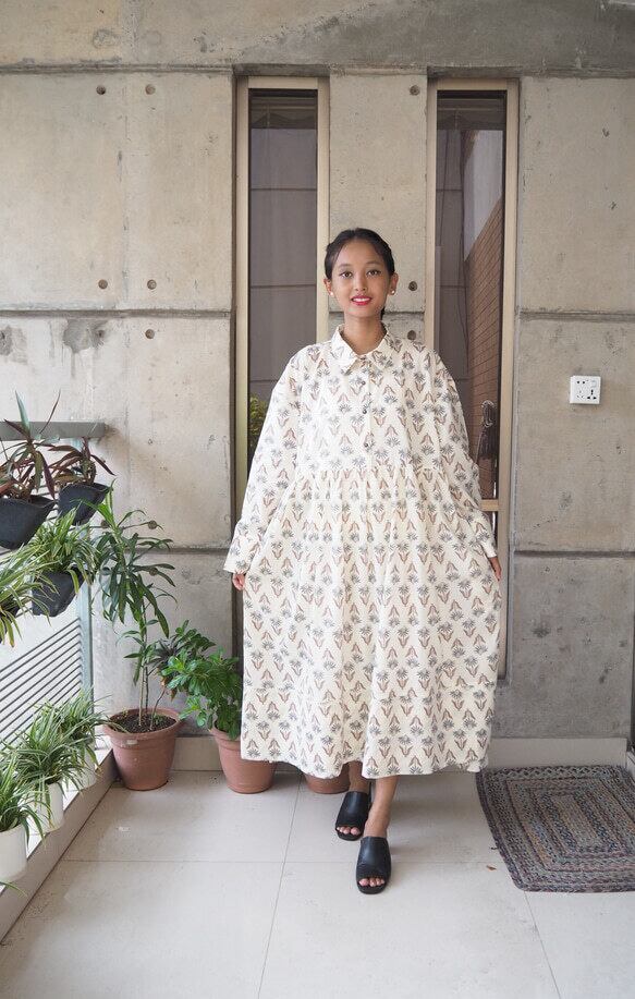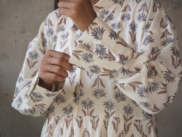 *弊社の取り扱っているインド綿は基本1ロール20M程度となっており、また多くの洋服が4-5M必要とするようなギャザーやタックが入っているもののため1つの柄布から4-5着しかお作りする事ができません。商品の販売を複数サイトで行っており、在庫の更新が間に合わなく同じタイミングで布の在庫以上の商品の購入を受けてしまう事があったり、布に落ちないシミが見つかったりして商品の縫製が出来ない事がございます。