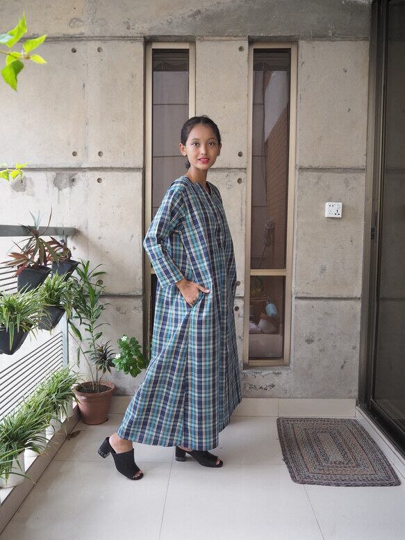 ダブルガーゼ素材でおつくりしたクルタです。ワンピースです。