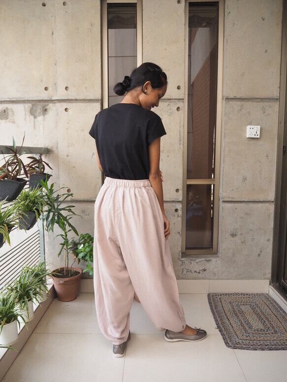 ダブルガーゼで1枚で映えるバルーンパンツをお作りしました。