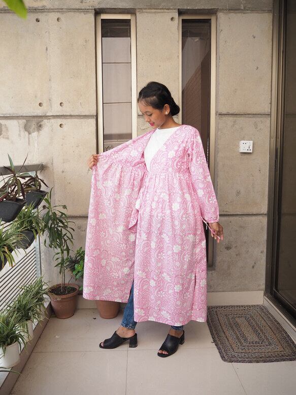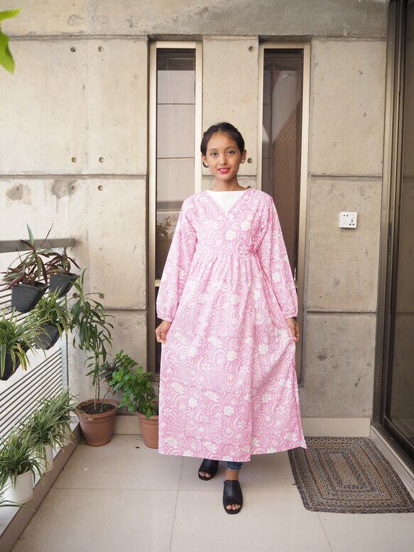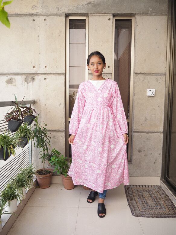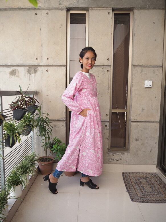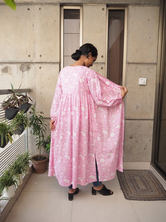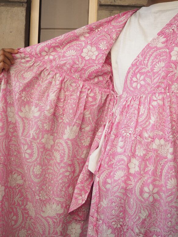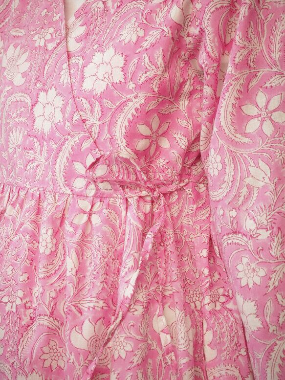 インド綿を使ったワンピースです。(単体では透けるので、下にインナーパンツ、デニムなどの着用をお勧めします。)