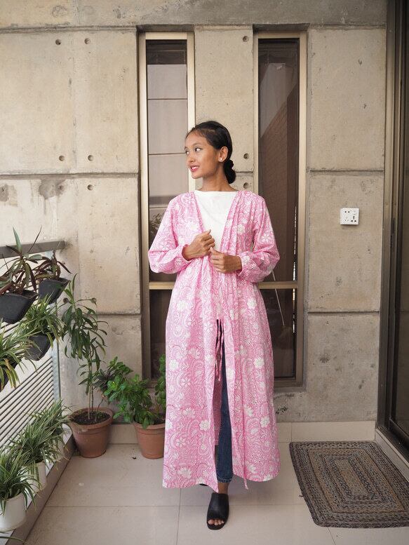 ワンピースとしても、羽織としてもどちらにもご使用いただけます。冬の間は中にタートルネックを入れて、夏はタンクトップの上にさらりと羽織っていただける商品です。