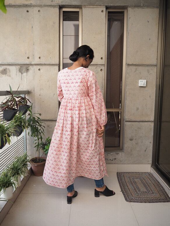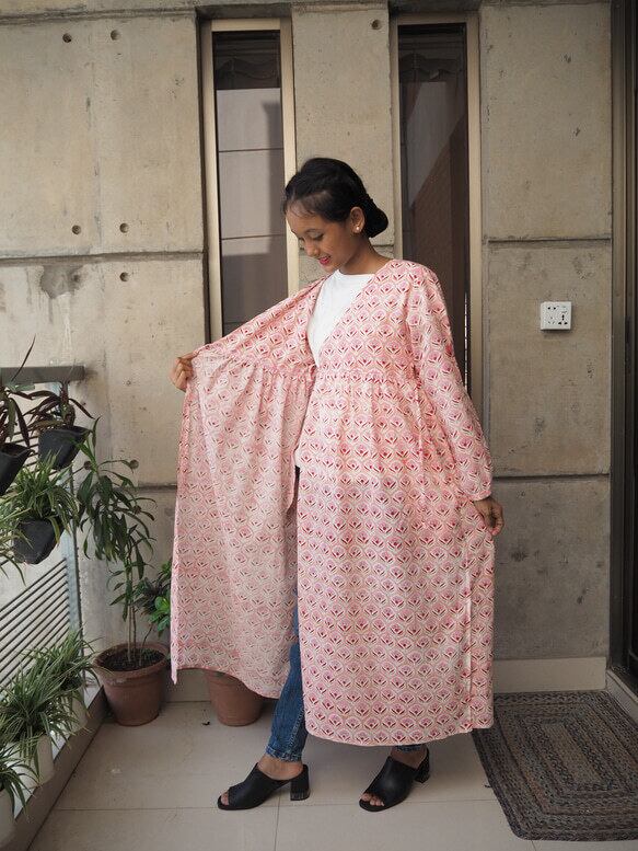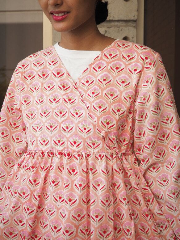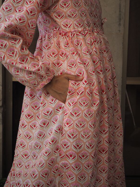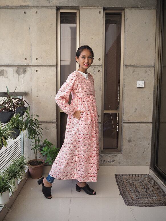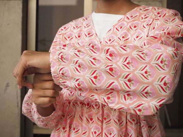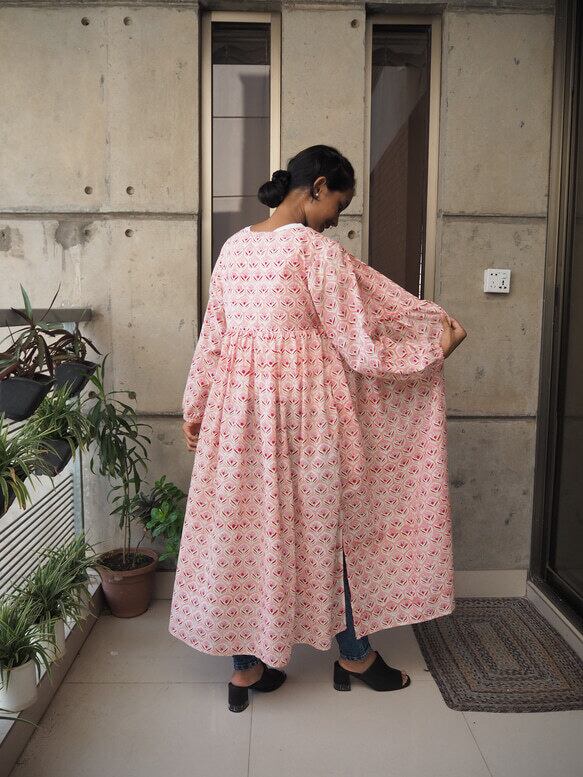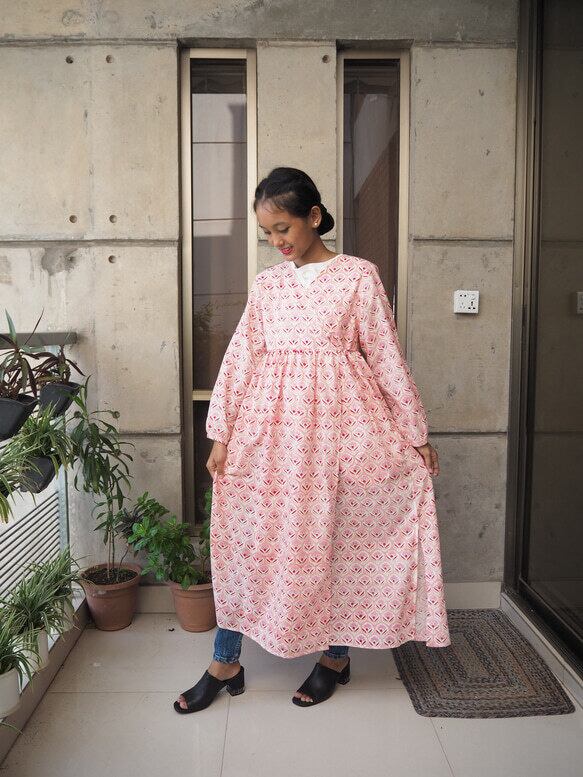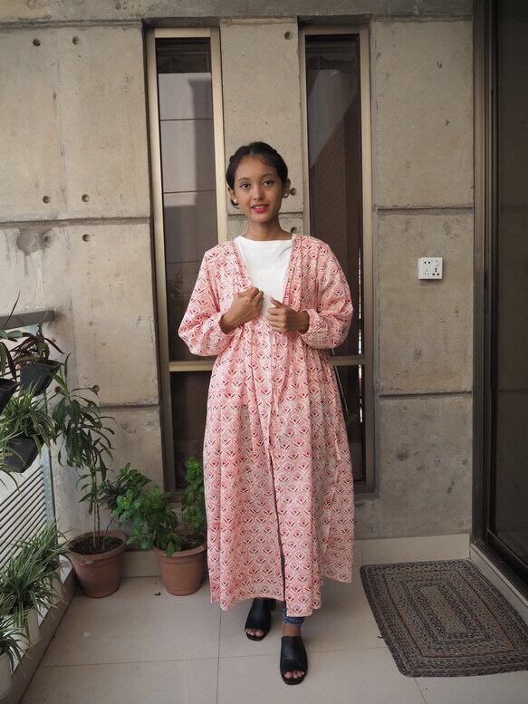 インド綿を使ったワンピースです。(単体では透けるので、下にインナーパンツ、デニムなどの着用をお勧めします。)