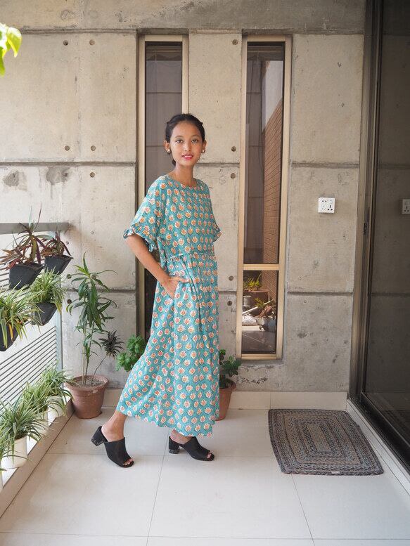 インド綿(スクリーンプリント)を使ったワンピースです。