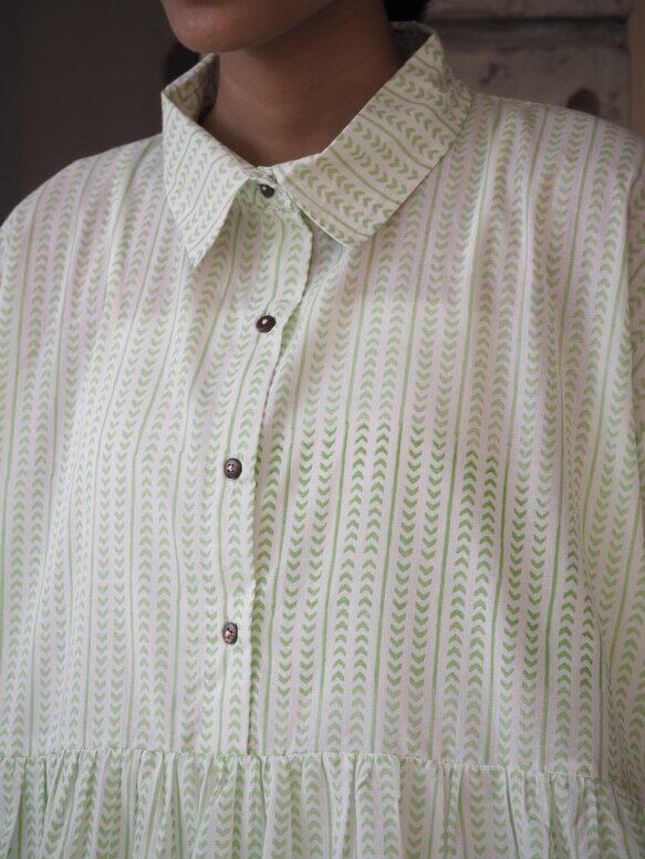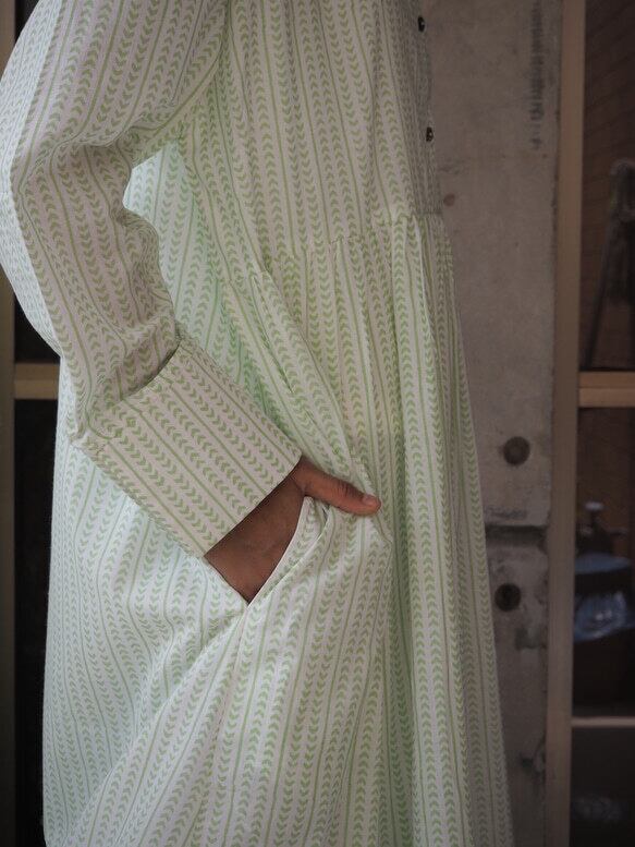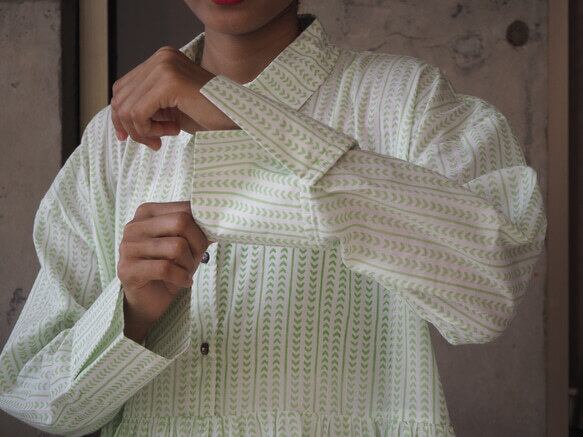*弊社の取り扱っているインド綿は基本1ロール20M程度となっており、また多くの洋服が4-5M必要とするようなギャザーやタックが入っているもののため1つの柄布から4-5着しかお作りする事ができません。商品の販売を複数サイトで行っており、在庫の更新が間に合わなく同じタイミングで布の在庫以上の商品の購入を受けてしまう事があったり、布に落ちないシミが見つかったりして商品の縫製が出来ない事がございます。