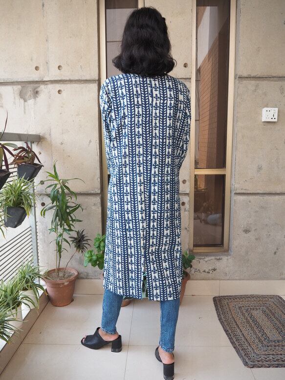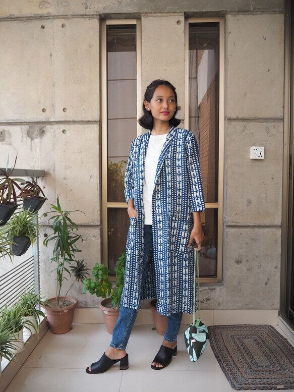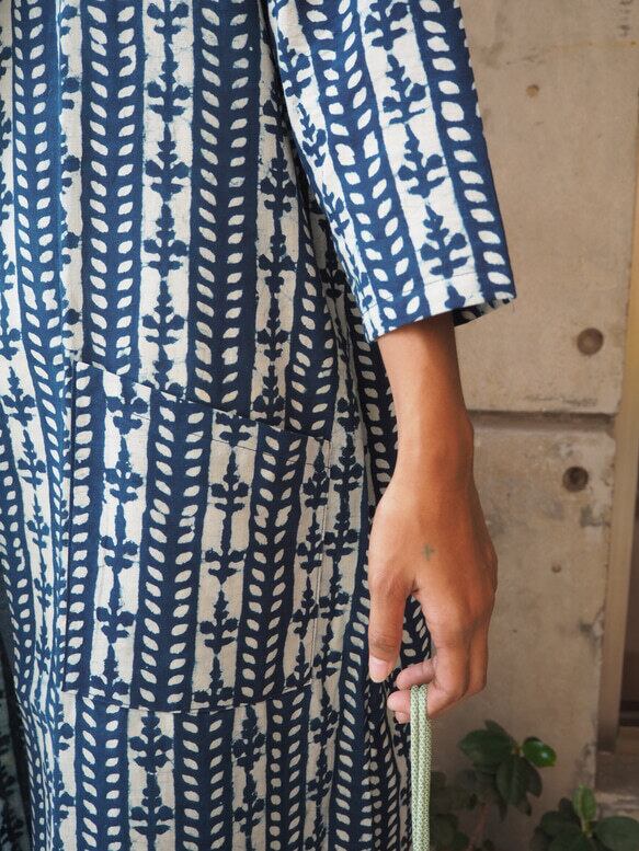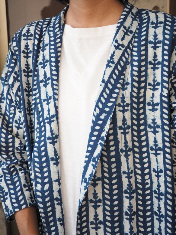 7部袖ジャケットガウン (ハンドブロックプリント)