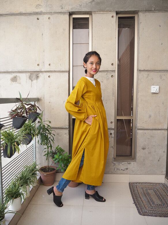 Jonnoの商品は全てバングラデシュの自社スタジオでお作りしています。(布をカッティングマスターが裁断する以外は全て一人の担当者が全工程を責任持って担当しています。)現在は7名のスタッフが日々Jonnoの商品を丁寧に日々縫製しています。