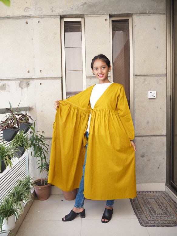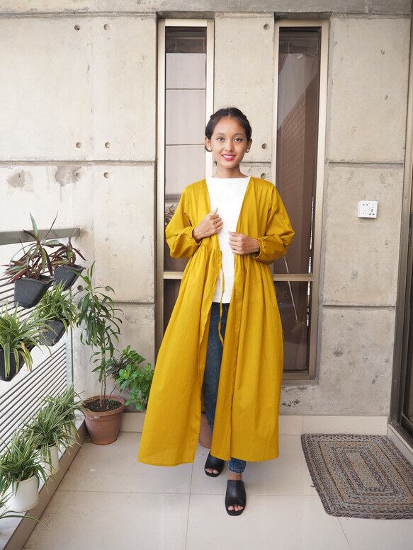ワンピースとしても、羽織としてもどちらにもご使用いただけます。冬の間は中にタートルネックを入れて、夏はタンクトップの上にさらりと羽織っていただける商品です。