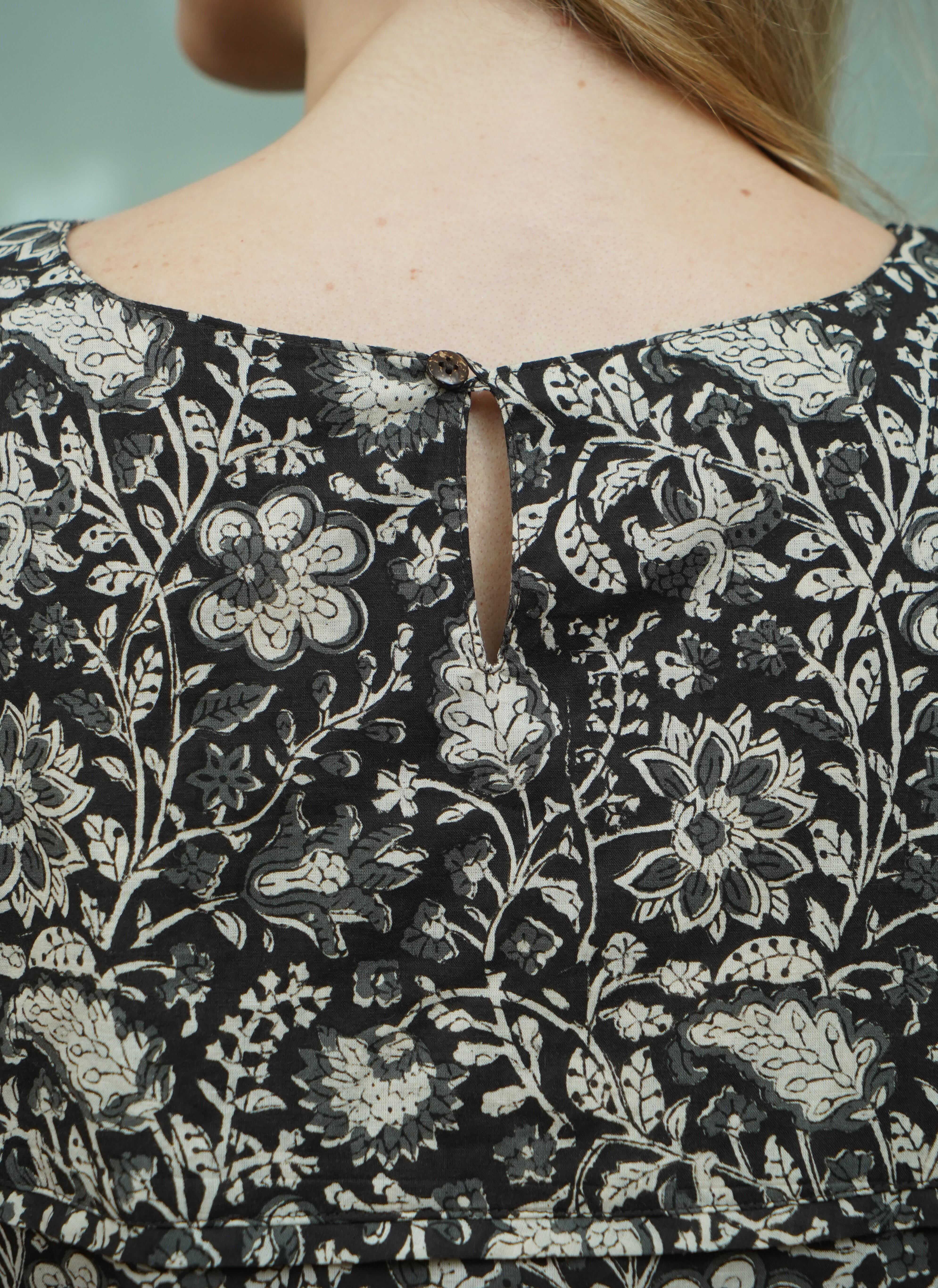 インド綿/Aラインワンピース/マキシ丈 (ハンドブロックプリント)