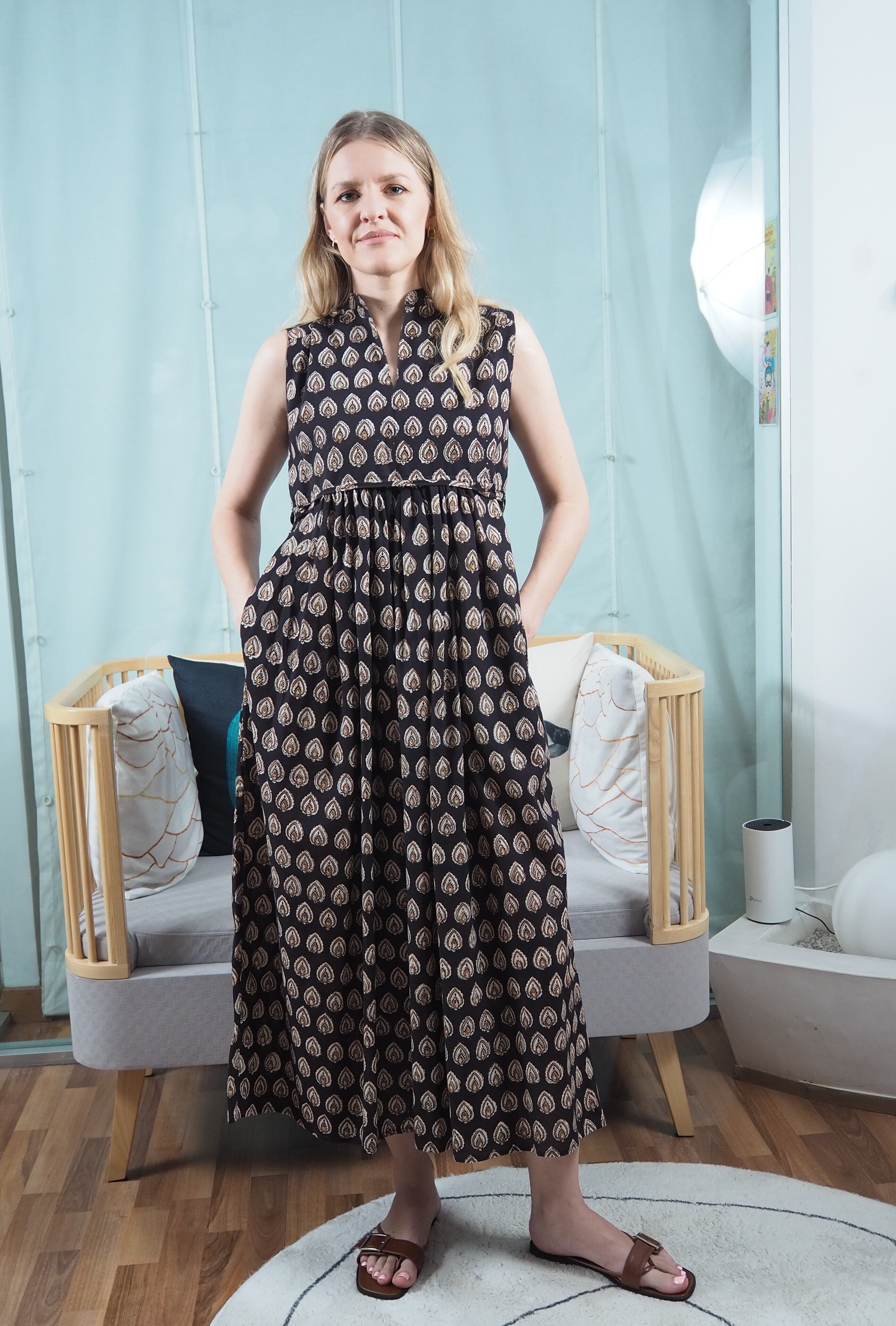 インドの手仕事、ハンドプリントインド綿を使ったワンピースです。