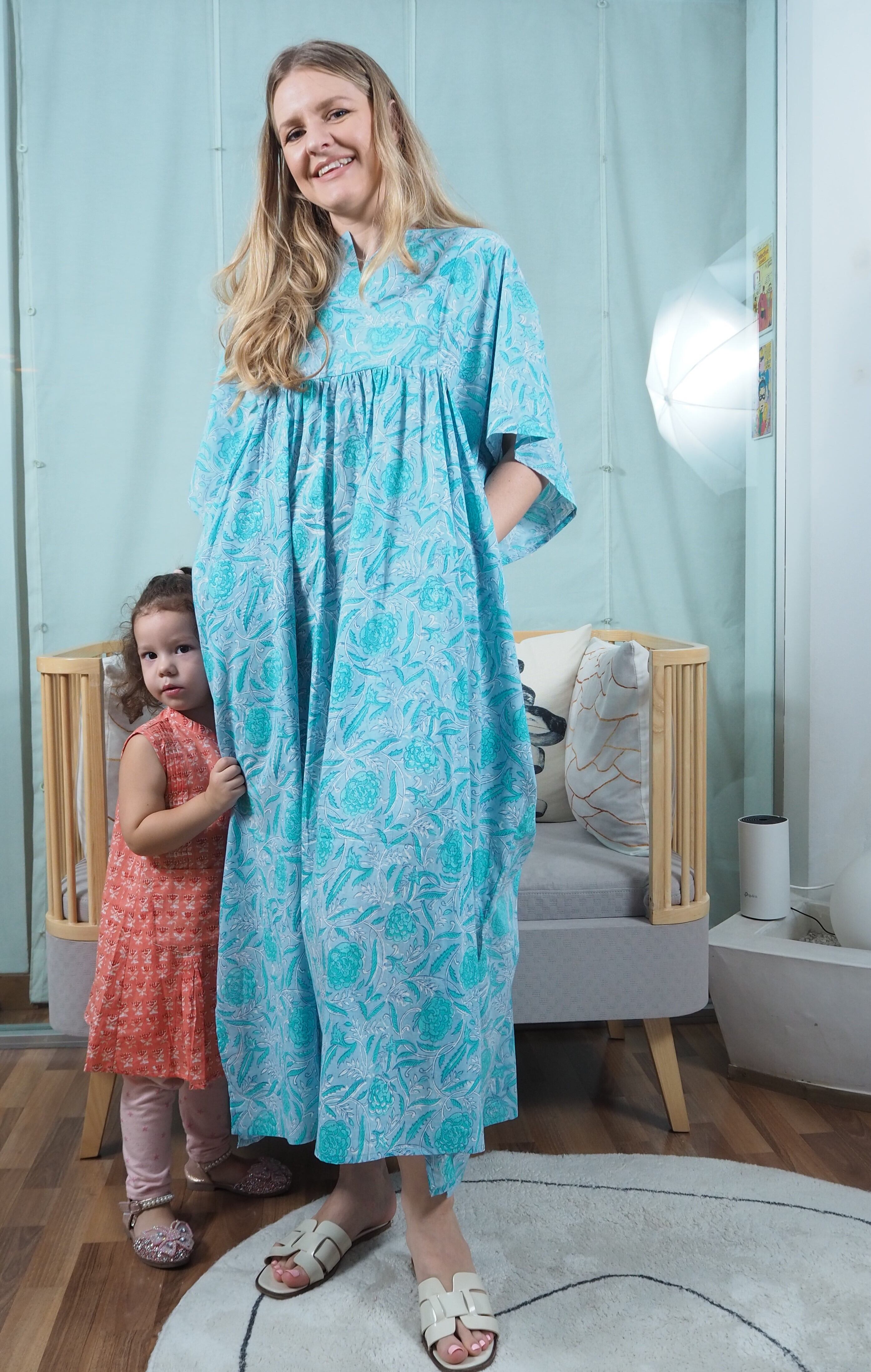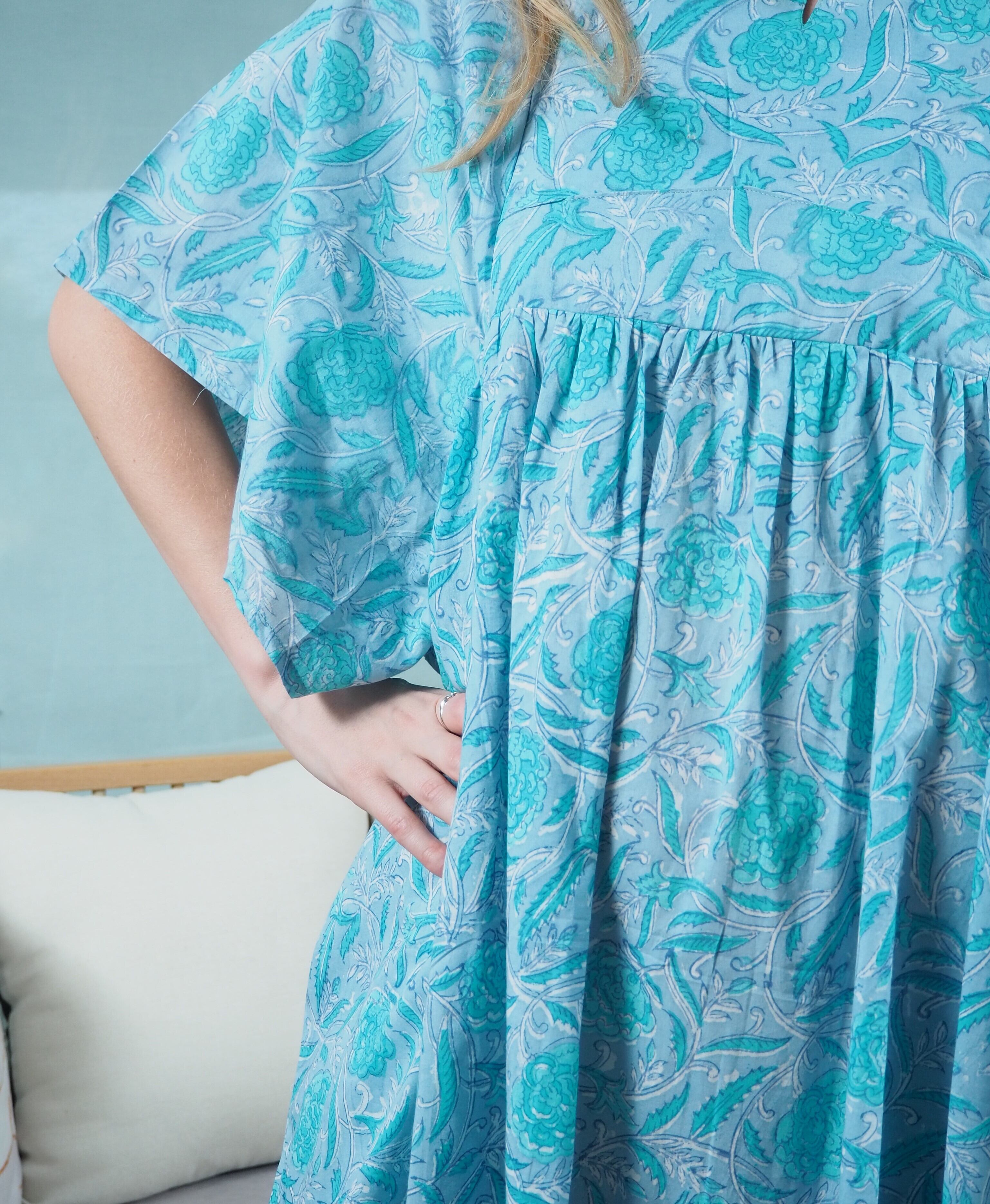 インド綿(スクリーンプリント)を使ったワンピースです。