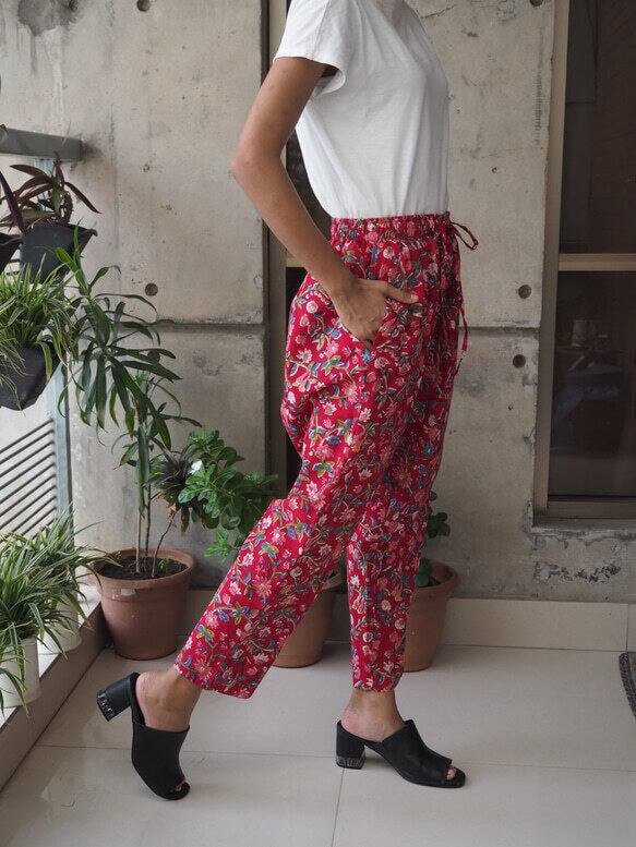 秋色インド綿サルエルパンツ