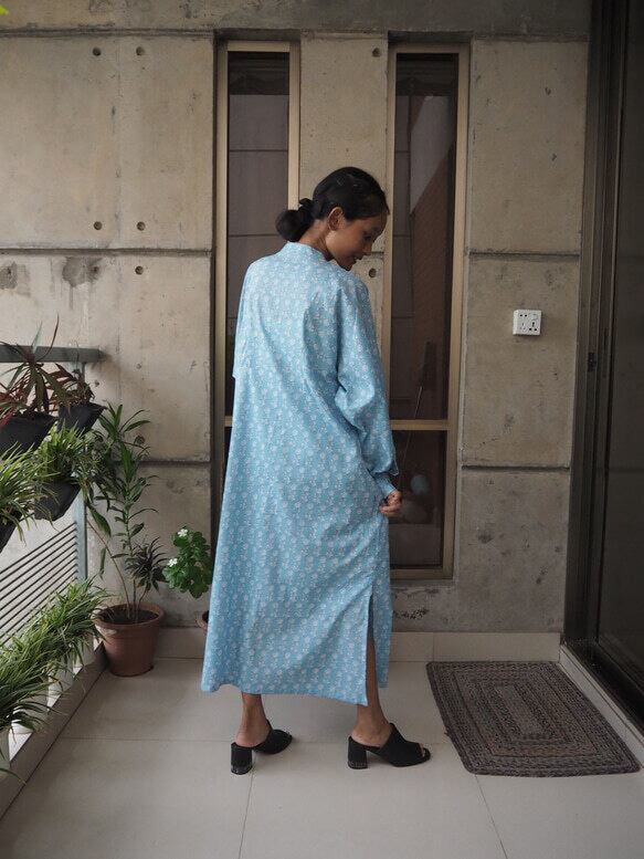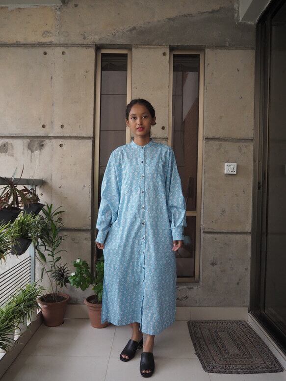 *弊社の取り扱っているインド綿は基本1ロール20M程度となっており、また多くの洋服が4-5M必要とするようなギャザーやタックが入っているもののため1つの柄布から4-5着しかお作りする事ができません。商品の販売を複数サイトで行っており、在庫の更新が間に合わなく同じタイミングで布の在庫以上の商品の購入を受けてしまう事があったり、布に落ちないシミが見つかったりして商品の縫製が出来ない事がございます。