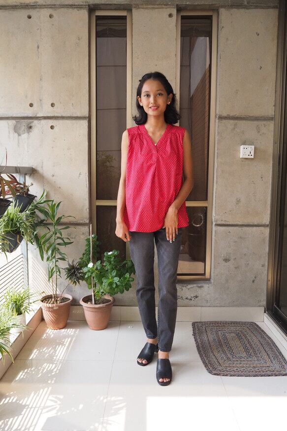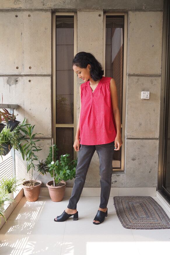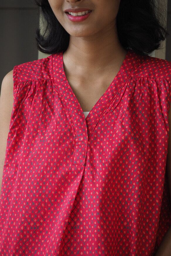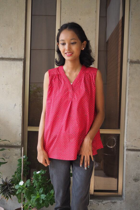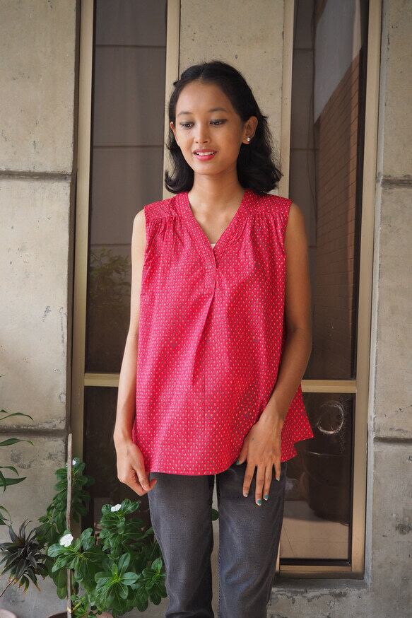 ハンドメイド/ノースリーブトップス(ハンドブロックプリント)