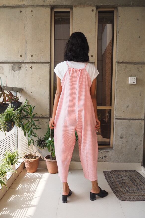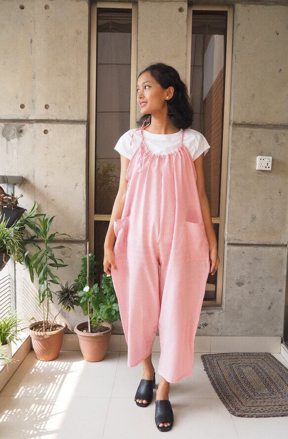 インドの手仕事布、ハンドブロックプリントコットンでで楽チンに穿いていただけるサロペットをつくりました!