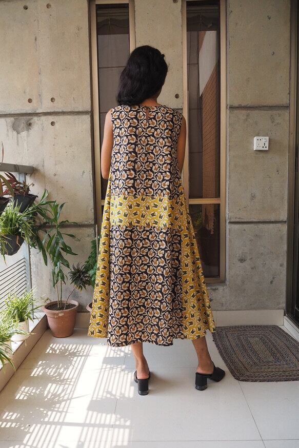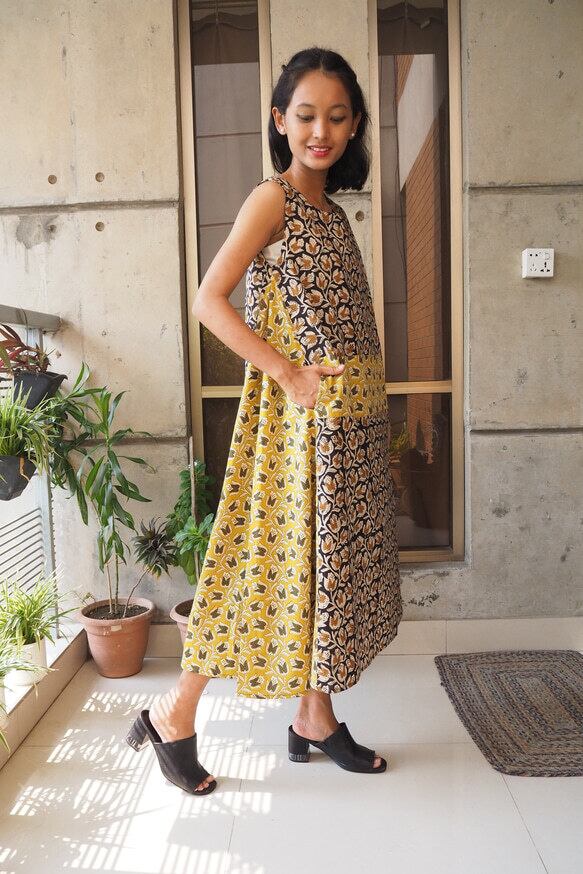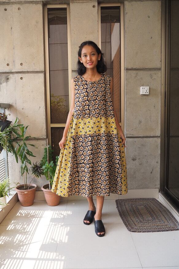 インド綿を使ったワンピースです。組み合わせる布の在庫の関係から1〜2着くらいの限定となります。