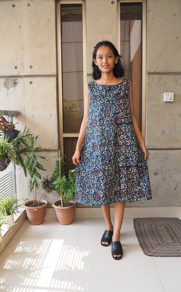 ハンドメイド/インディアンハンドブロックコットン/ワンピース/マキシ丈