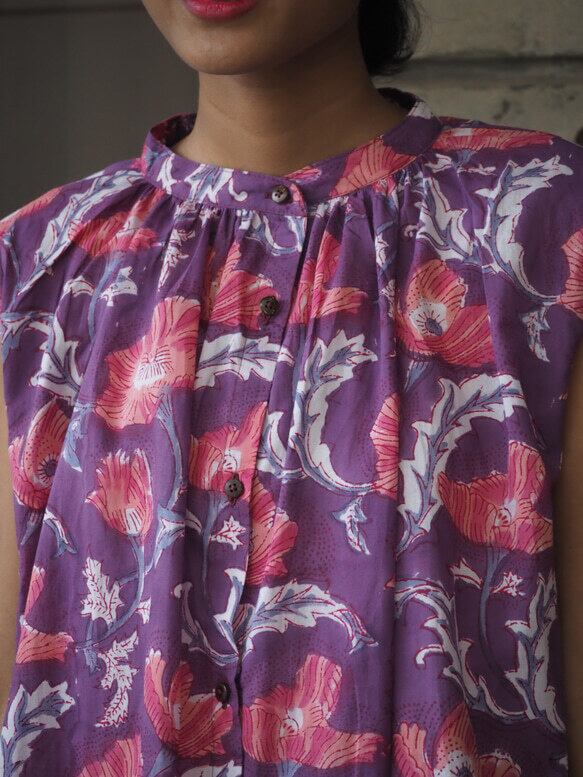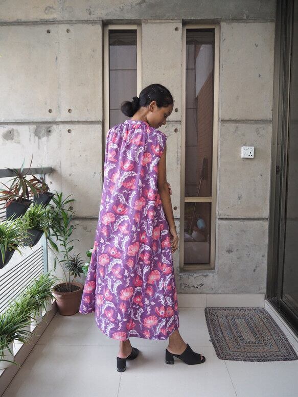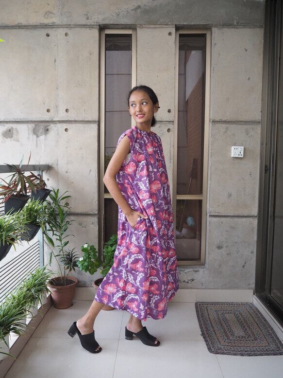 バングラデシュ産の上質なハンドブロック綿糸を使用したコットンワンピース。
